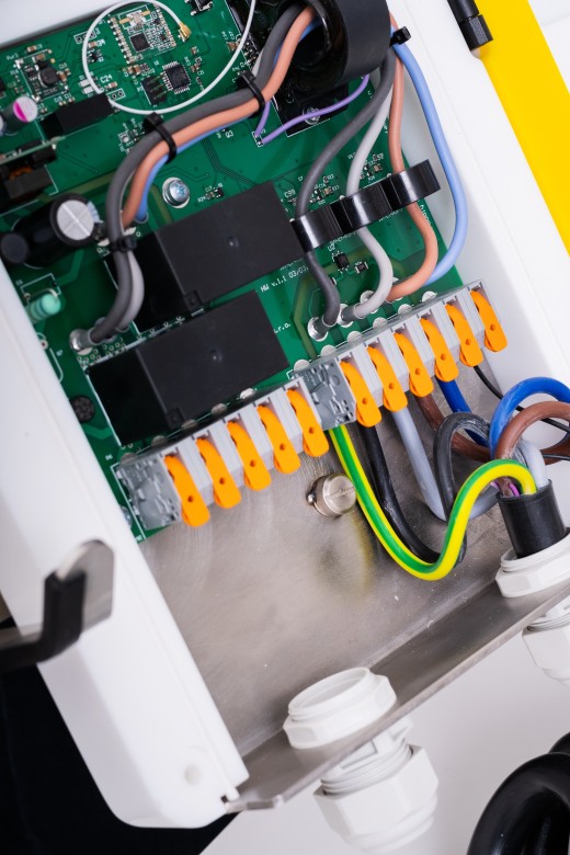 Ładowarka 22 kW do samochodów elektrycznych wraz z kablem zasilającym. W cenę wliczona jest jednostka AZ ROUTER 3F Master, która optymalizuje ładowanie zgodnie z nadwyżkami do DS - bezprzewodowo.