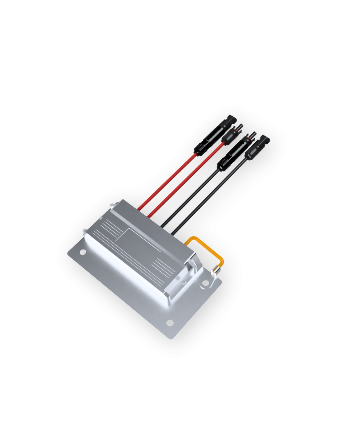Jednotka je s ohledem na snadnou implementaci do stringu realizována jako průchozí - oba póly stringu se připojí do jednotky a oba z nich také vystupují. Spojení je realizováno klasickými MC4 konektory (na vstupu s integrovanou pojistkou) a vodiči s o průřezy 6 mm2 (v některých verzích i 10 mm2) s dvojitou izolací a barevným rozlišením.