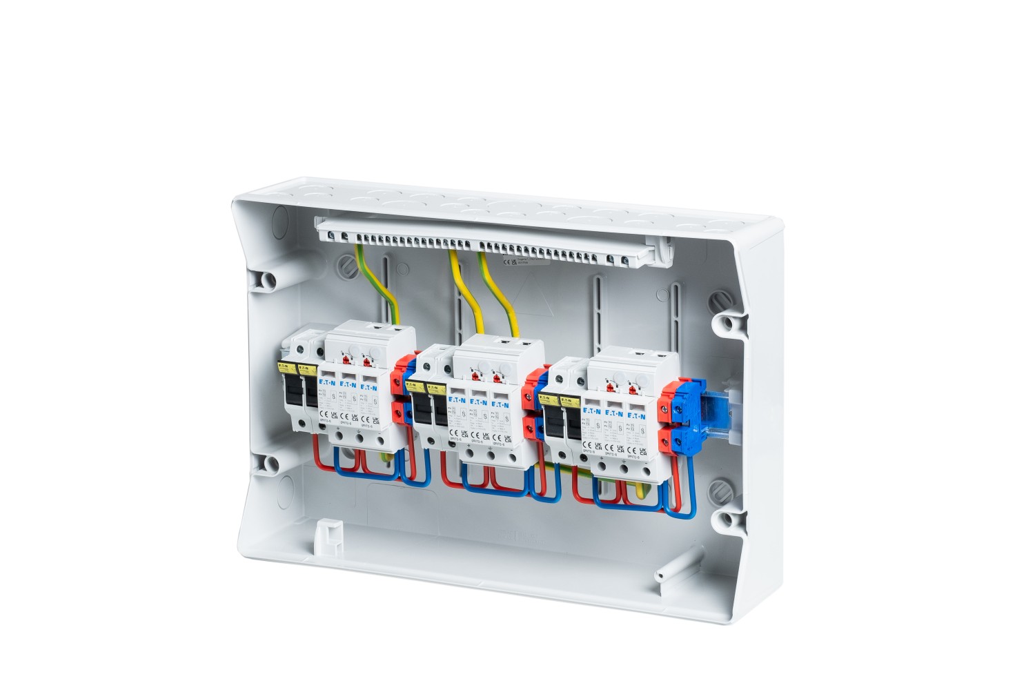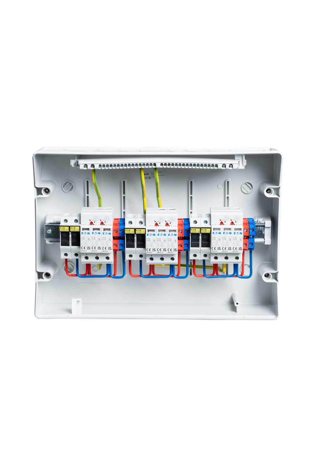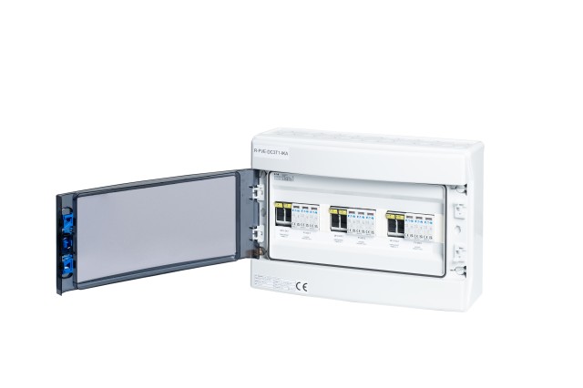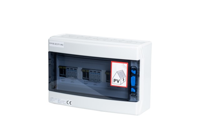 Rozdzielnica prądu stałego przeznaczona do montażu naściennego o stopniu ochrony IP65/20 służąca jako rozdzielnica wejściowa z paneli fotowoltaicznych (do falownika) dla całej oferty elektrowni fotowoltaicznych. Zwłaszcza przy zastosowaniu innych rozdzielnic, także EATON IKA-1/18-ST.