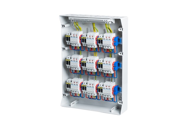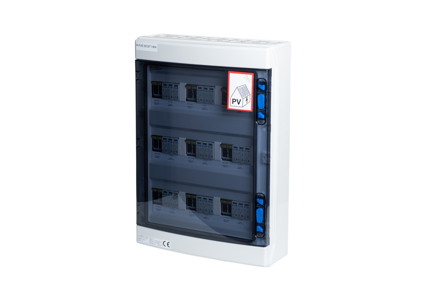 Rozdzielnica prądu stałego przeznaczona do montażu naściennego o stopniu ochrony IP65/20 służąca jako rozdzielnica wejściowa z paneli fotowoltaicznych (do falownika) dla całej oferty elektrowni fotowoltaicznych. Zwłaszcza przy zastosowaniu innych rozdzielnic, także EATON IKA-3/54-ST.