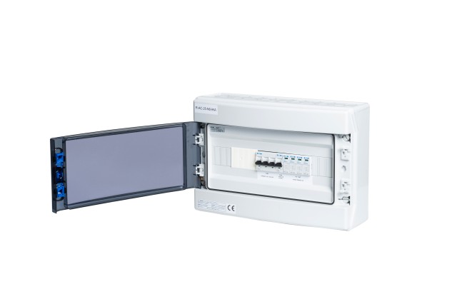 Rozdzielnica prądu przemiennego przeznaczona do montażu naściennego o stopniu ochrony IP65/20C służąca jako rozdzielnica wejściowa (przy falowniku) dla trójfazowych elektrowni fotowoltaicznych (typowo falowniki: GOODWE, SOLAX, ,GROWATT, WATTSONIC i inne).