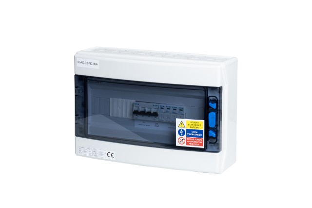 Rozdzielnica prądu przemiennego przeznaczona do montażu naściennego o stopniu ochrony IP65/20C służąca jako rozdzielnica wejściowa (przy falowniku) dla trójfazowych elektrowni fotowoltaicznych (typowo falowniki: GOODWE, SOLAX, ,GROWATT, WATTSONIC i inne).