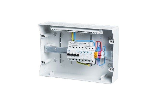 Nadaje się do połączenia z rozdzielnicą R-FVE-DC2T1-IKA, R-FVE-DC3T1-IKA dla części DC instalacji i rozdzielnicą R-FVE-A40-2 dla obwodów rezerwowych z przełącznikiem ręcznym (z obejściem falownika) lub rozdzielnica R-FVE-Z4 z wyłącznikiem, gniazdami i bezpiecznikiem.