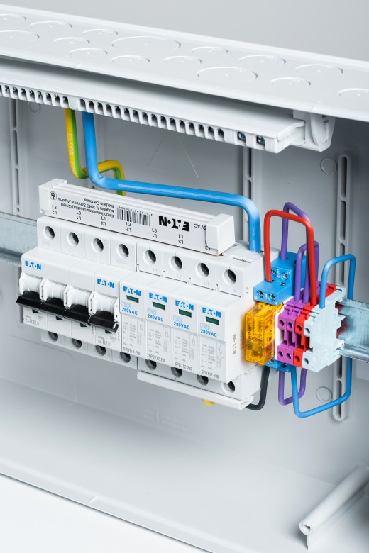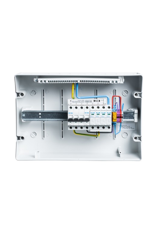 Rozdzielnica wyposażona jest w ogranicznik przepięć prądu przemiennego T1+T2, wyłącznik nadprądowy B32/3 chroniący wejście do falownika. Ponadto wyłącznik automatyczny B2/1, który zabezpiecza wyszukiwarkę gniazd/przekaźników, co zapewnia spełnienie warunków dystrybucji N0% (obejmuje styki NC i NO oraz środek). Co zapewnia zastosowanie we wszystkich typach przetwornic dostępnych na rynku.