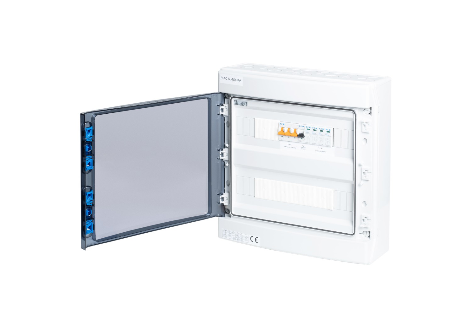 Nadaje się do łączenia z rozdzielnicą R-FVE-DC4T1-IKA, R-FVE-DC5T1-IKA lub do R-FVE-DC9T1-IKA dla części DC instalacji i rozdzielnicą R-FVE-A40-2 dla obwodów rezerwowych z przełącznik ręczny (z obejściem falownika), lub rozdzielnica R-FVE-Z4 z wyłącznikiem, gniazdami i bezpiecznikiem.