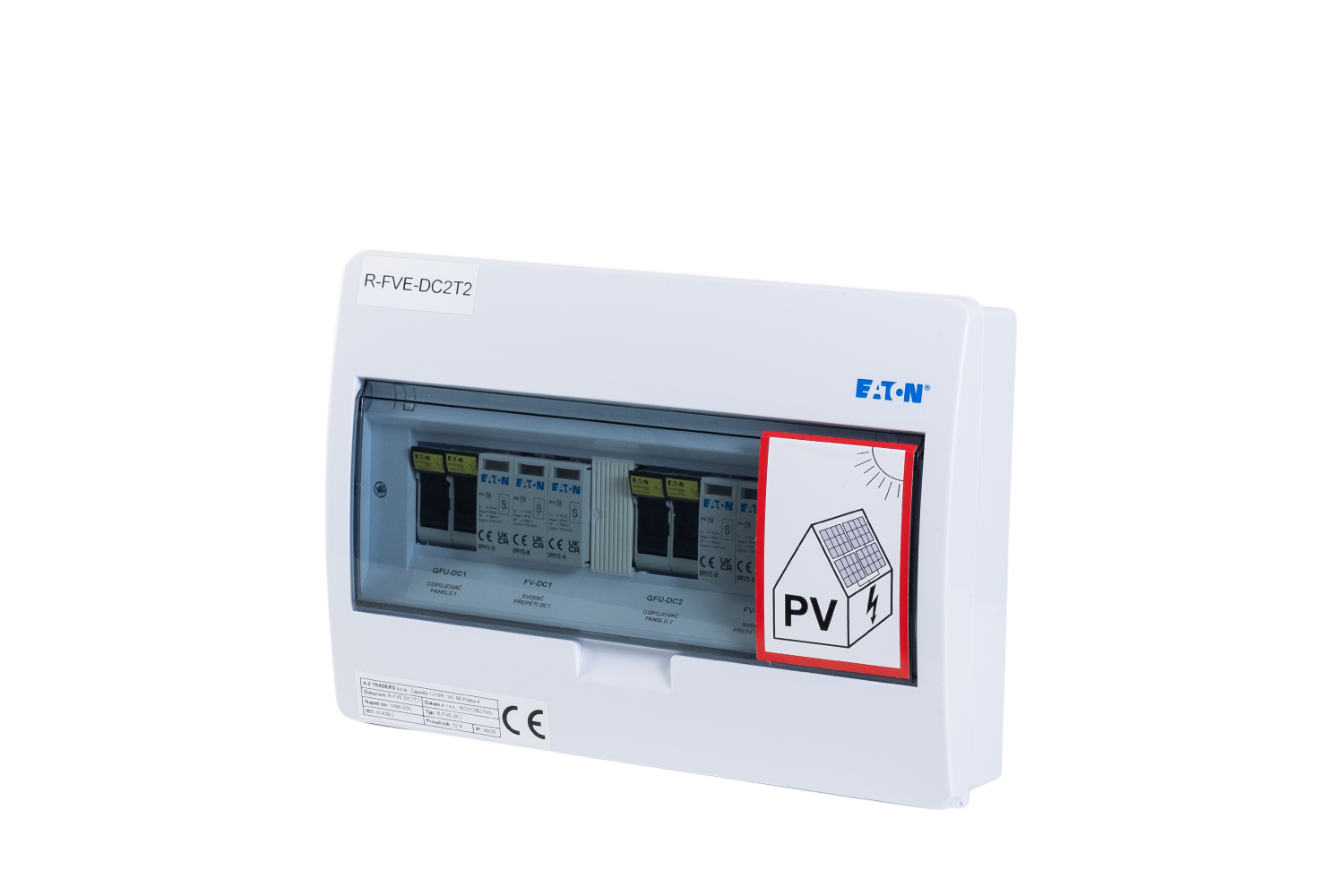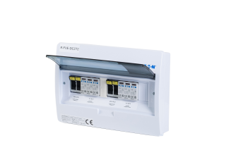 Rozdzielnica prądu stałego przeznaczona do montażu naściennego o stopniu ochrony IP40/20 służąca jako rozdzielnica wejściowa z paneli fotowoltaicznych (do falownika) dla całej oferty elektrowni fotowoltaicznych. Zwłaszcza przy zastosowaniu innych rozdzielnic, także EATON BC-O-1/12-ECO.
