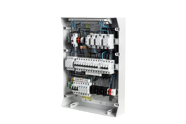 Rozdzielnica prądu przemiennego przeznaczona do montażu naściennego, IP65, stosowana do obsługi trójfazowej elektrowni fotowoltaicznej (zazwyczaj falownik Goodwe 4 do 10K-ET).