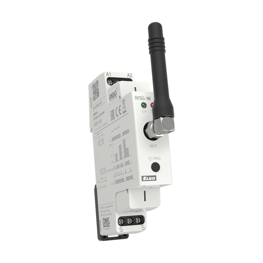 Bezdrátový převodník kontaktu je vhodný zejména pro bezdrátový přenos informace o spínání HDO. Díky trvalému napájení jej lze využít také k častému přenosu informace pro ovládání spotřebiče či zařízení. Po přivedení napětí na svorky “S” vysílá periodicky povel sepnout v intervalu 2 min. Při odpojení napětí vyšle neprodleně povel vypnout. Tlačítko TEST na ovladači slouží pro přiřazení ke spínacímu prvku. Možnost nastavení scén, kdy jedním stiskem ovládáte více prvků iNELS Wireless. Součástí balení je interní anténa AN-I, v případě umístění převodníku do plechového rozvaděče, pro zlepšení signálu můžete použít externí anténu AN-E. Dosah až 160 m (na volném prostranství), v případě nedostatečného signálu mezi ovladačem a prvkem použijte opakovač signálu RFRP-20N. Komunikační frekvence s obousměrným protokolem RFIO. 1-modulové provedení prvku s montáží do rozvaděče.